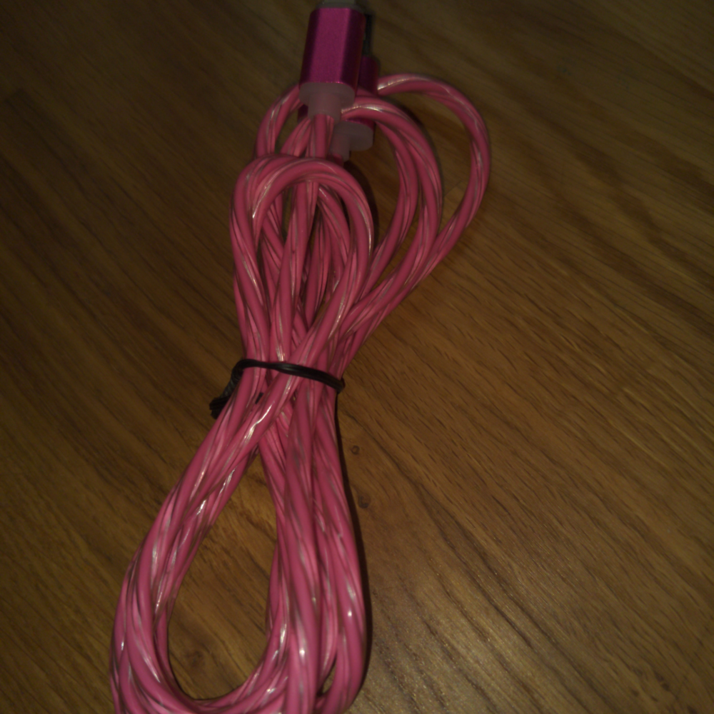 Add some glow to your desktop! Up for grabs is a vibrant, pink LED light-up iPhone charger that combines style with utility. Whether you’re charging in the dark or just love a pop of color, this cable stands out.