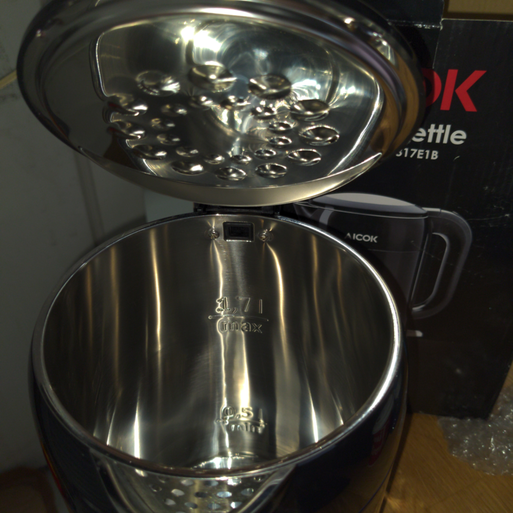 Up for auction is a never-used electric kettle.