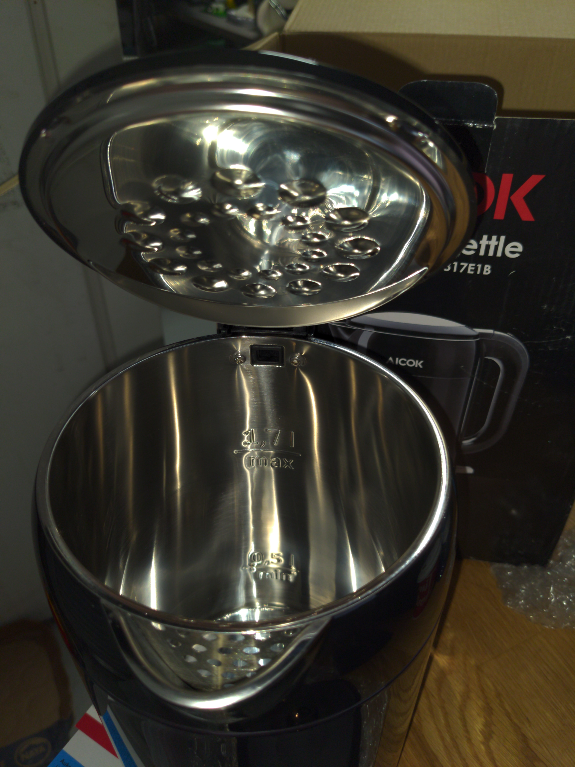 Up for auction is a never-used electric kettle.