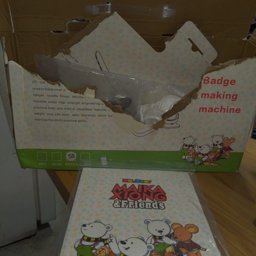 Auction: Like-New Button Making Accessories (Open Box) Up for auction is a high-quality set of button-making accessories. These items are in “Like New” condition, though the original packaging has sustained some damage. If you already have a press and just need the components to start creating, this is the perfect lot for you! Condition Details…
