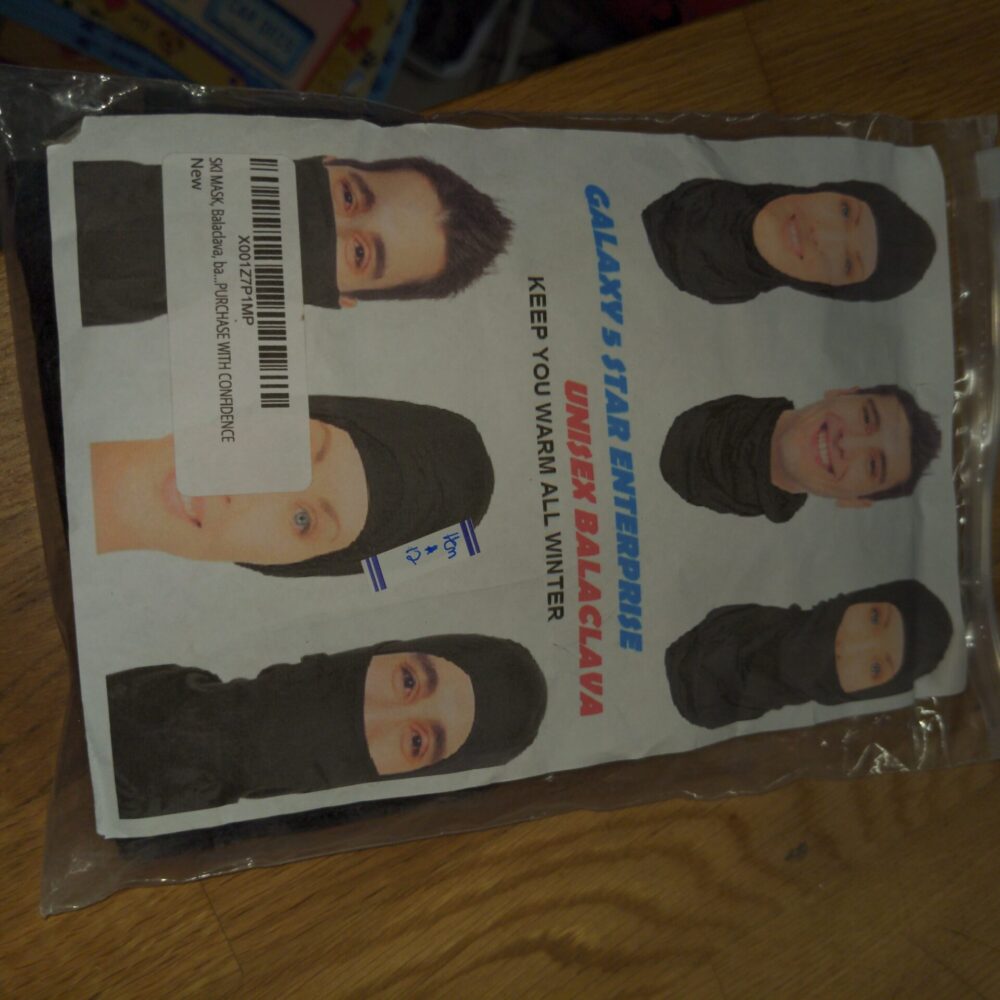 Design: Full-face coverage with a reinforced eye port. Fits comfortably under helmets or hats.