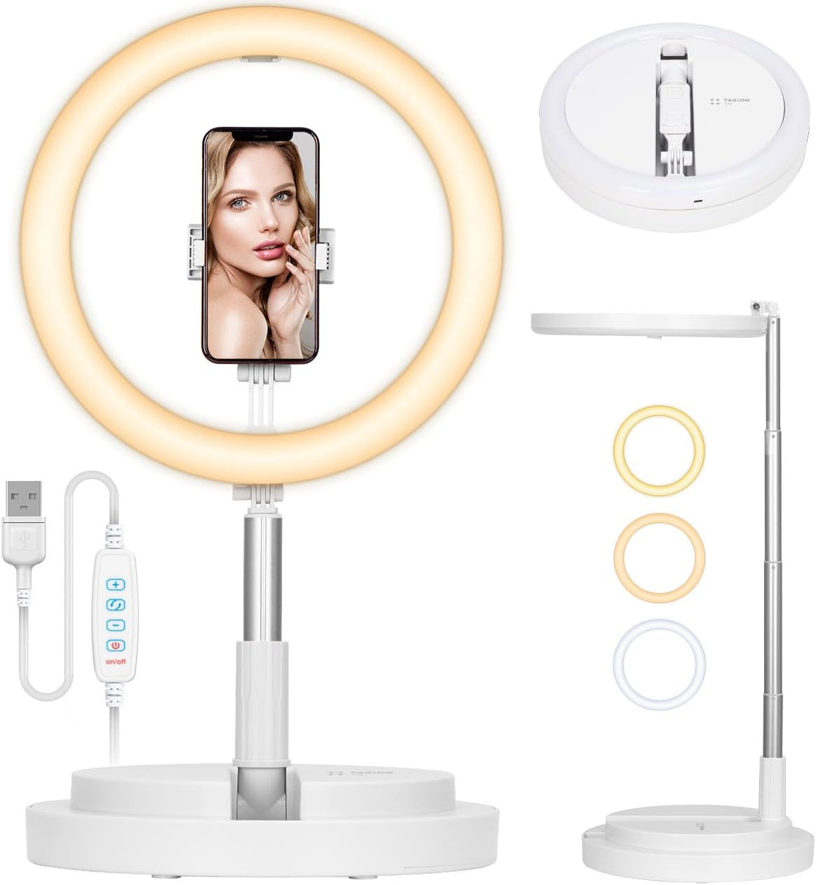 TARION Selfie Ring Light with Stand – 11.8″ Foldable Ring Light with Phone Holder & Cold Shoe Mount, Tall Desk Ring Light for Videography Photography Led Beauty Ring Light Adjustable Brightness White