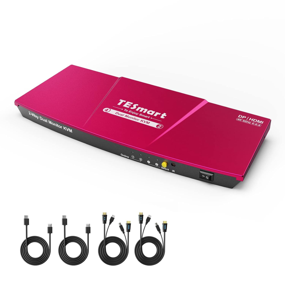 Upgrade your workstation with this premium TESmart KVM Switch. Perfect for power users, designers, or gamers who need to seamlessly toggle between two computers while using dual monitors.