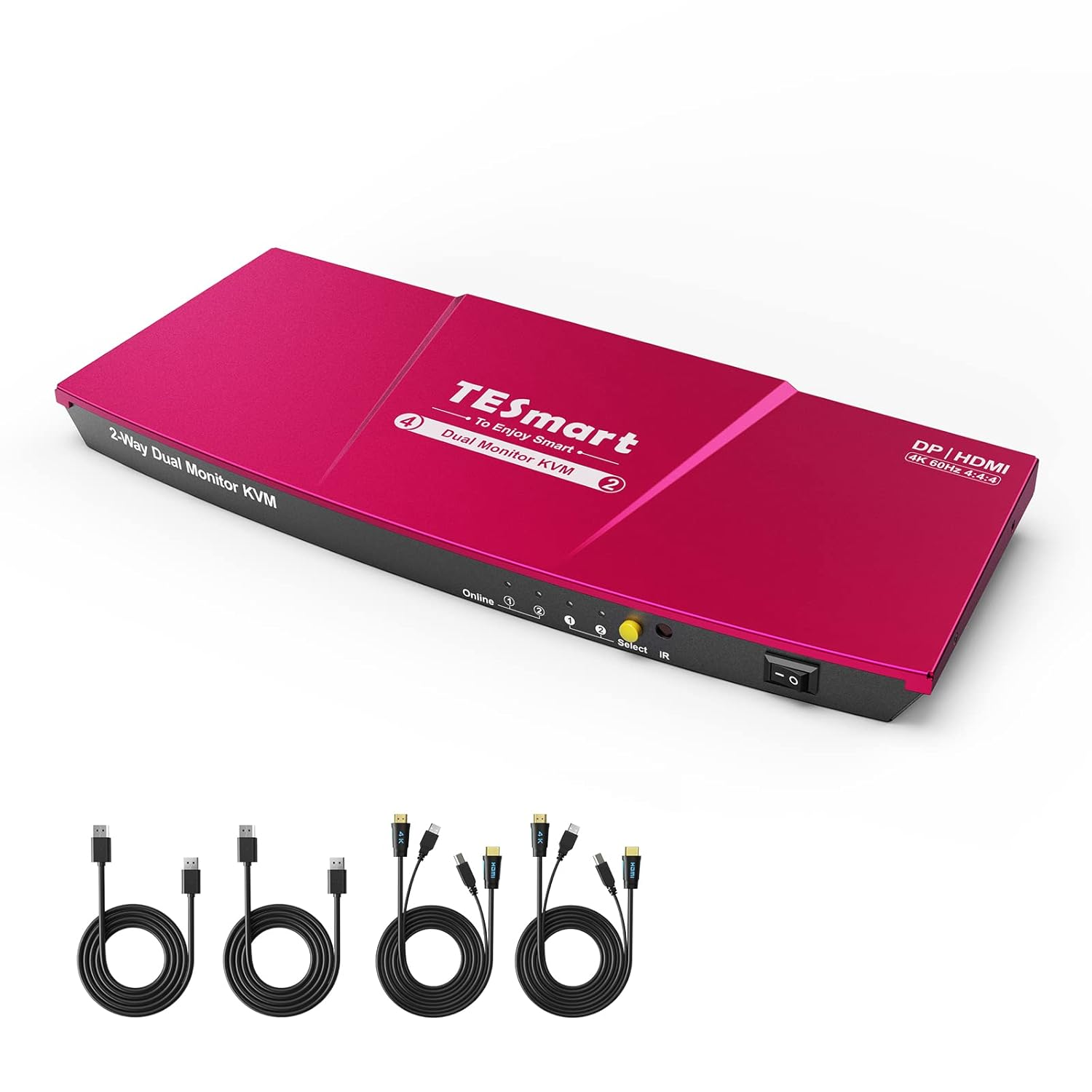 TESmart 2-Port Dual Monitor KVM Switch – New Open Box