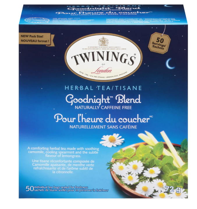 Looking for a better night’s sleep? Grab this brand-new, factory-sealed box of Twinings of London Goodnight Blend. This caffeine-free herbal infusion is crafted with chamomile, lavender, and vanilla to help you wind down and relax.