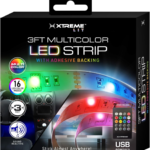 Xtreme Multicolored LED Strip Lights with Remote, Color Changing 3 Foot USB Powered RGB+IC Lights Strip with Adhesive Backing, 16 LED Colors, 4 Modes Including Flashing, Strobe, Fade, & Smooth